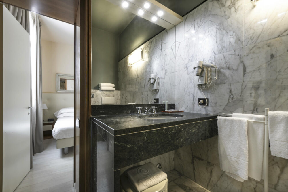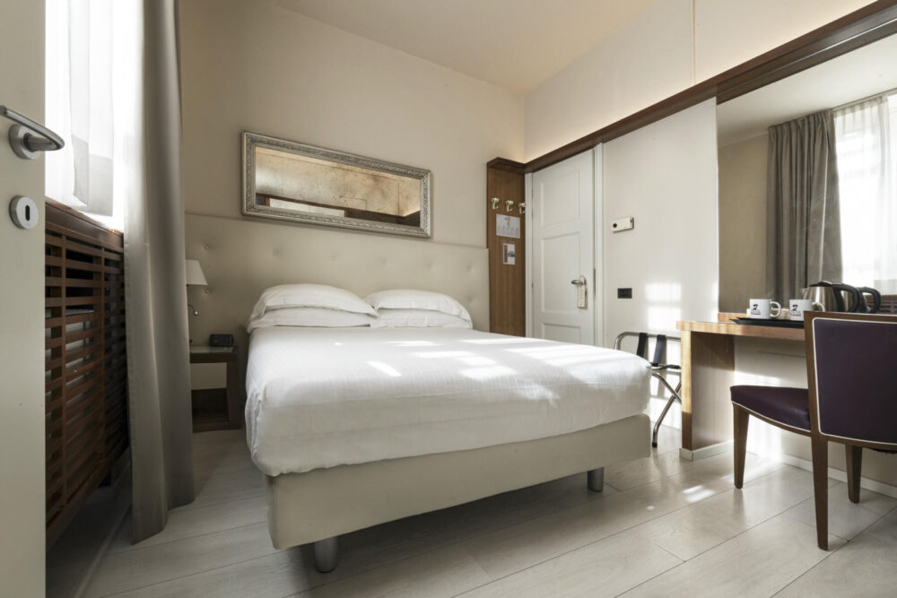 This small but mighty room packs a French double bed (150x190cm), ideal for couples or for solo travelers planning on exploring Lucca by day and getting some rest by night.